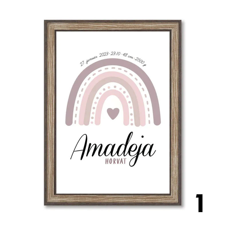 Ustvarite spomine s personalizirano grafiko ob rojstvu. Čudovito darilo za malčka ali malčico ter starše.