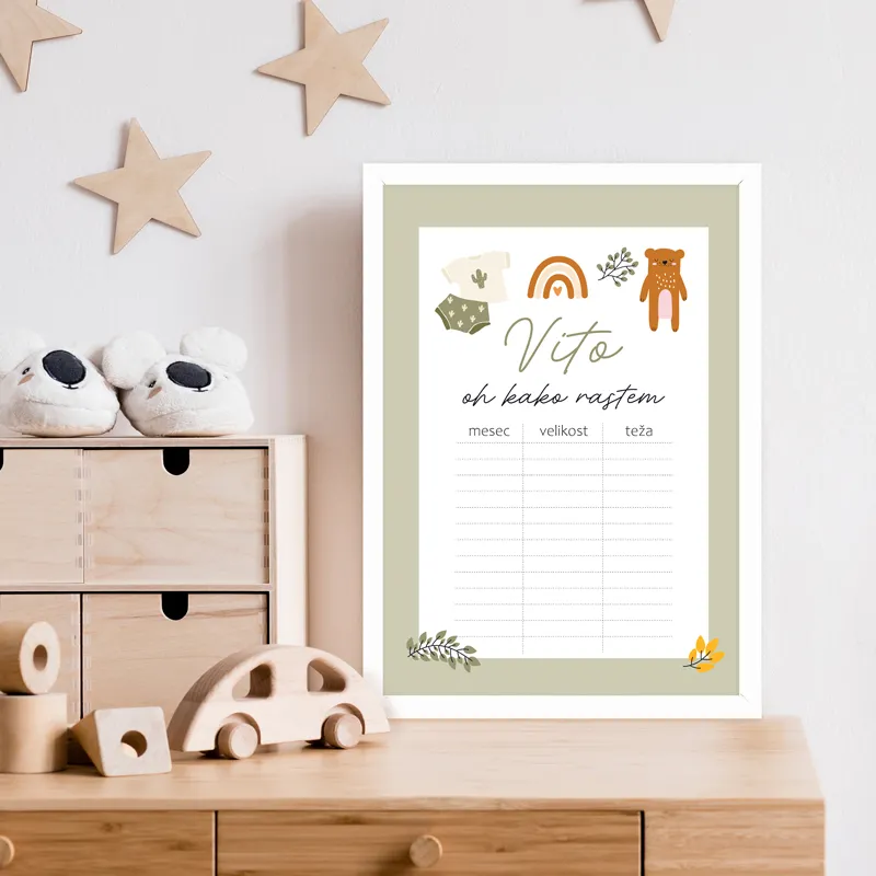Personalizirana grafika ob rojstvu Oh kako rastem - za fantka