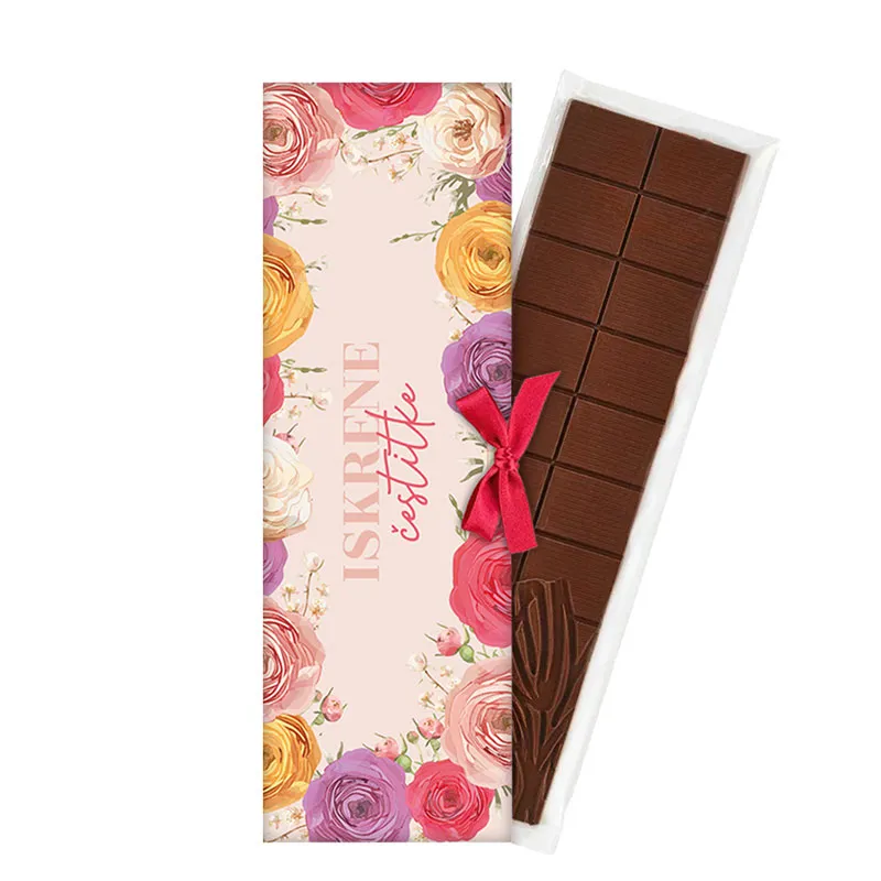 Čokolada, ISKRENE ČESTITKE, barvne vrtnice, mlečna čokolada, 100 g