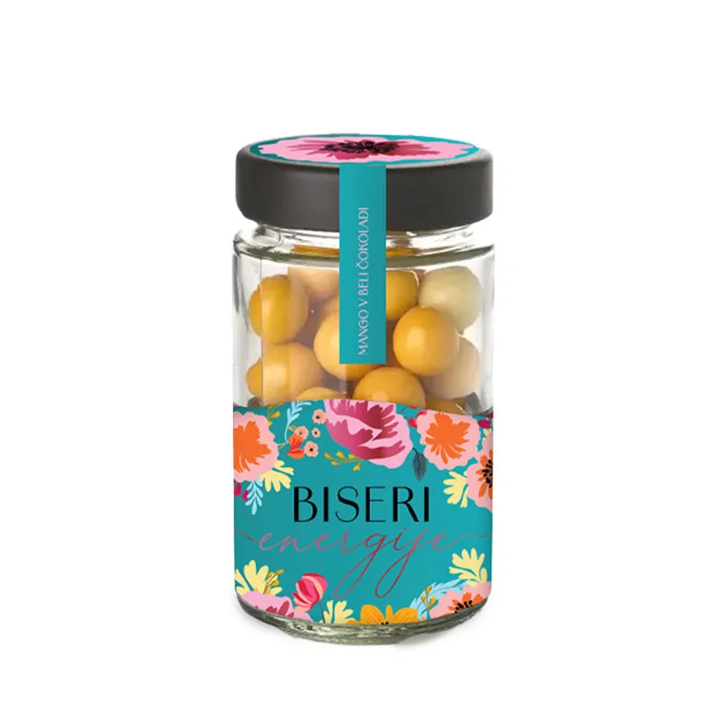 Dražeji v steklenički, BISERI ENERGIJE, mango v beli čokoladi, 125 g
