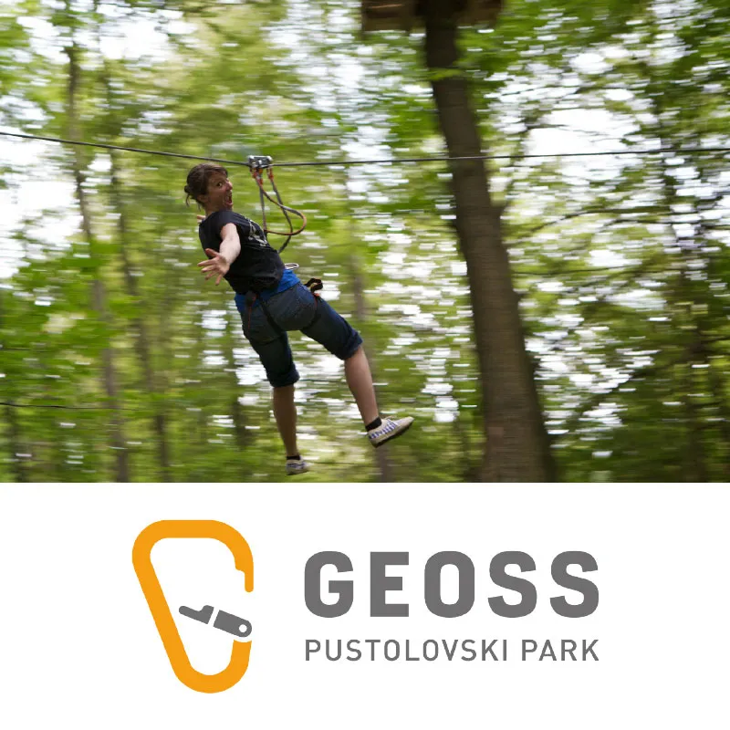 Orjaška vstopnica za park in spust po jeklenici za 1 osebo, Pustolovski park Geoss, Vače