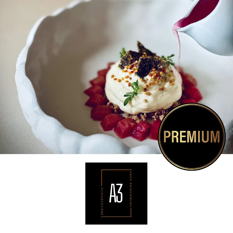 Vrednostni bon v vrednosti 100€ lahko koristite na vse storitve v restavraciji A3 na gradu Rajhenburg. Bon je potrebno izkoristiti v celoti. Spektakularen razgled na reko Savo, grajska restavracija z izbranimi jedmi in vrhunska postrežba, dih jemajoča terasa, simbolizira zgodbo, ki jo ustvarjajo za cenjene goste. S spoštovanjem do grajske zgodovine in tradicije ribogojstva Pavlič, goste znova in znova razvajajo s kulinaričnimi presežki in ustvarjajo popolna kulinarična doživetja.