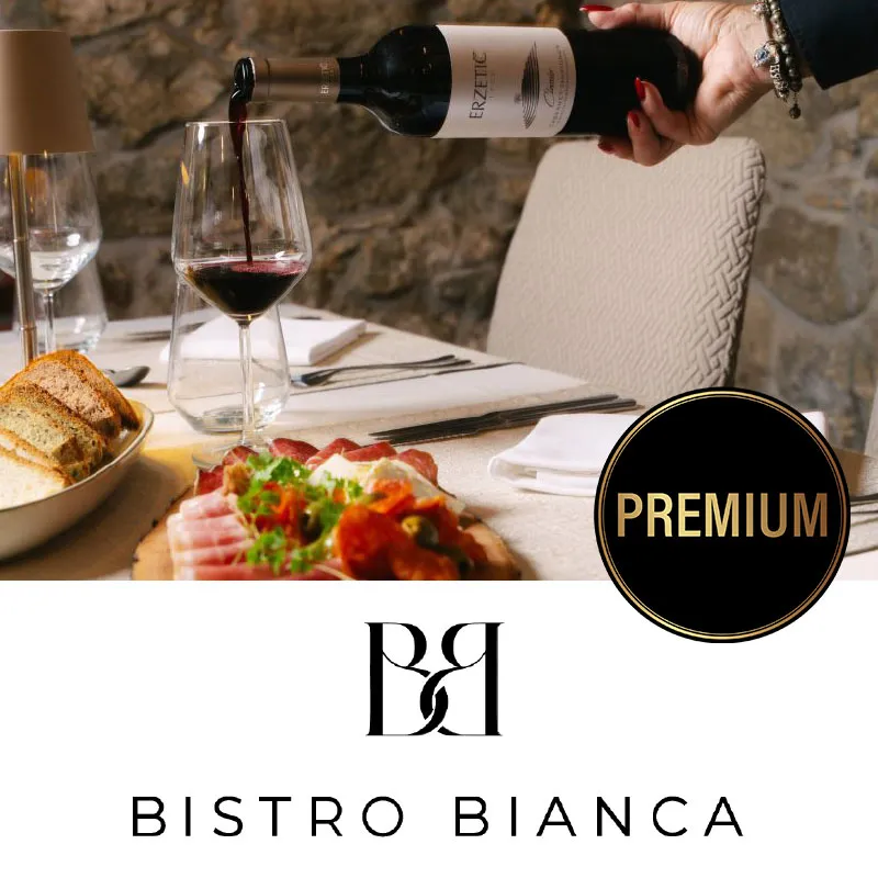 4- hodni degustaciji meni s steklenico vina za dve osebi vključuje hladno predjed, toplo predjed, glavno jed in sladico. Bistro Bianca je manjša preprosta restavracija v Velenju. Njihova ponudba zajema zajtrke, bistro hrano in a la carte. Za svoje specialitete uporabljajo skrbno izbrane sezonske sestavine, lokalne pridelave s katerimi ustvarjajo izjemne okuse.