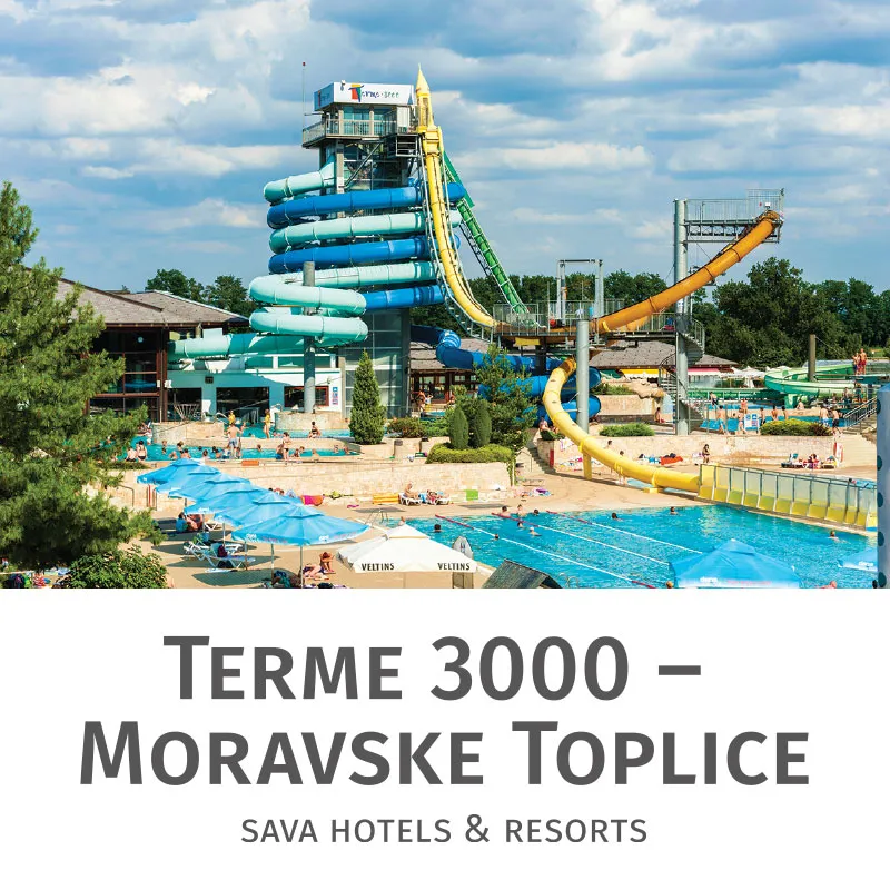 Vodni park Terme 3000 - obilje vodnih doživetij v dveh nadstropjih! Pričaka vas spodnji del, ki je namenjen živahnim in aktivnim, v njem se bodo odlično počutile tudi družine, saj je na voljo otroški bazen, zgornji del pa je s kotički za sproščanje, savnami (parna, IR in finska savna), namenjen predvsem počitku in sprostitvi. Na voljo je veliko vodno zračnih masaž, bazen z edinstveno črno termomineralno vodo in tobogani (tobogana dolžine 140 in 170 metrov sta odprta skozi celo leto).