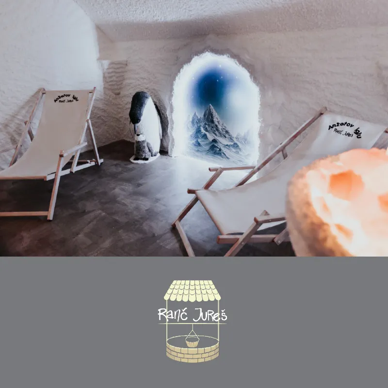 Obisk solne sobe Anžetov iglu za dve odrasli osebi na ranču Jureš, v času trajanja 40 minut. Solna soba je mesto za osebe, ki si želijo sprostitve in počitka. Vstopite in se prepustite toplini tega ljubkega pingvinjega doma. Solna soba je popolnoma naravna terapija, ki se priporoča še posebej za otroke. V pomoč je osebam z astmo, okužbami dihanih poti, alergijami in dermatitisi. Z vdihavanjem soli je poskrbljeno za čiščenje in razkuževanje dihalnih poti ter okrepitev naravne odpornosti.