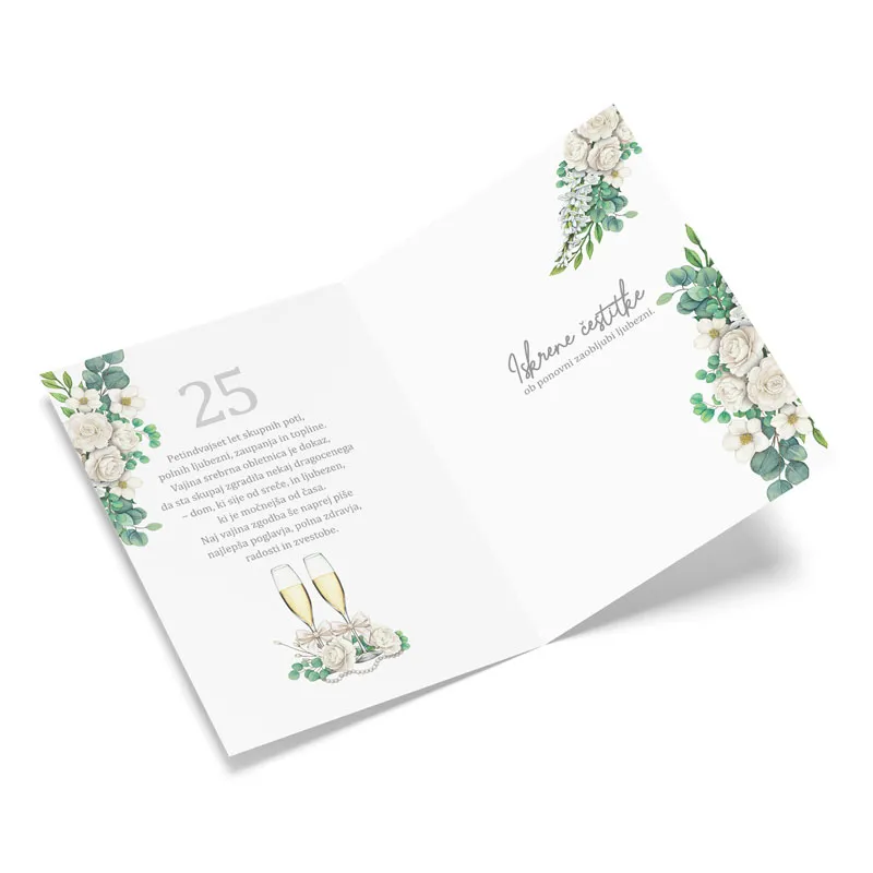 Petindvajset let skupnih poti, polnih ljubezni, zaupanja in topline. Vajina srebrna obletnica je dokaz, da sta skupaj zgradila nekaj dragocenega - dom, ki sije od sreče in ljubezen, ki je močnejša od časa. Naj vajina zgodba še naprej piše najlepša poglavja, polna zdravja, radosti in zvestobe.