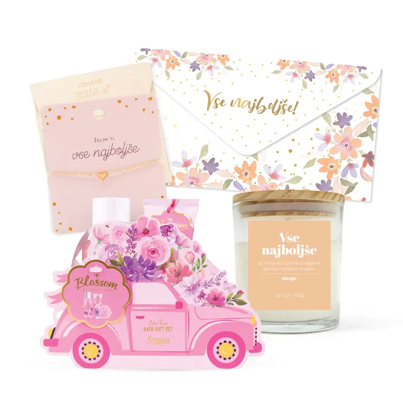 - zapestnico Vse najboljše v zlati barvi iz nejravečega jekla, v darilnem žepku