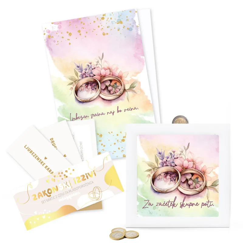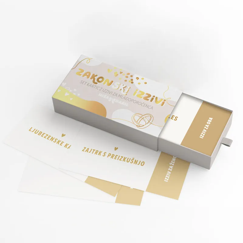- kupončke Zakonske izzive, set 30 kartic z izzivi za mladoporočence