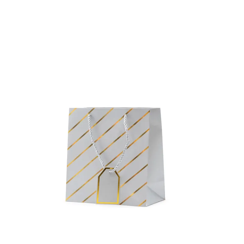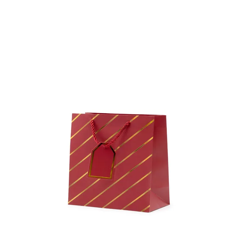 Vrečka darilna, 15x14.5x6cm, enobarvna, z zlatimi črtami, sort.
