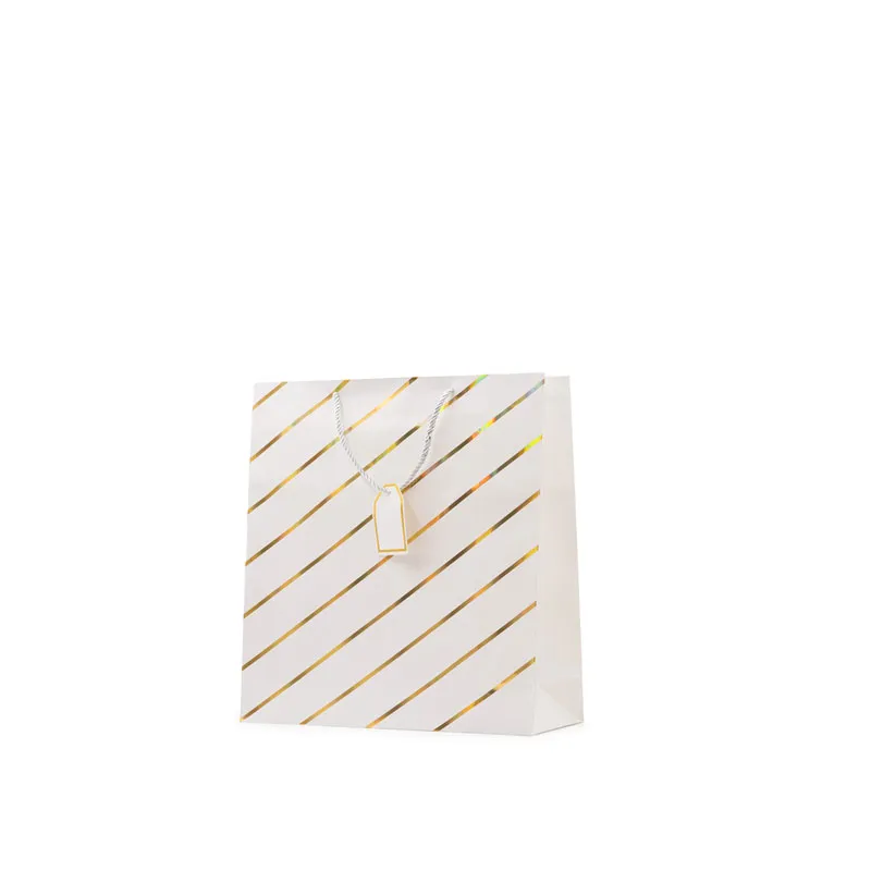 Elegantna darilna vrečka z zlatimi črtami je popolna izbira za lepo in prefinjeno zavijanje daril. Na voljo v različnih barvah – rdeči, beli, sivi in črni – omogoča, da izberete idealno vrečko za vsako priložnost, kot so rojstni dnevi, prazniki, obletnice, poroke ali poslovna darila.