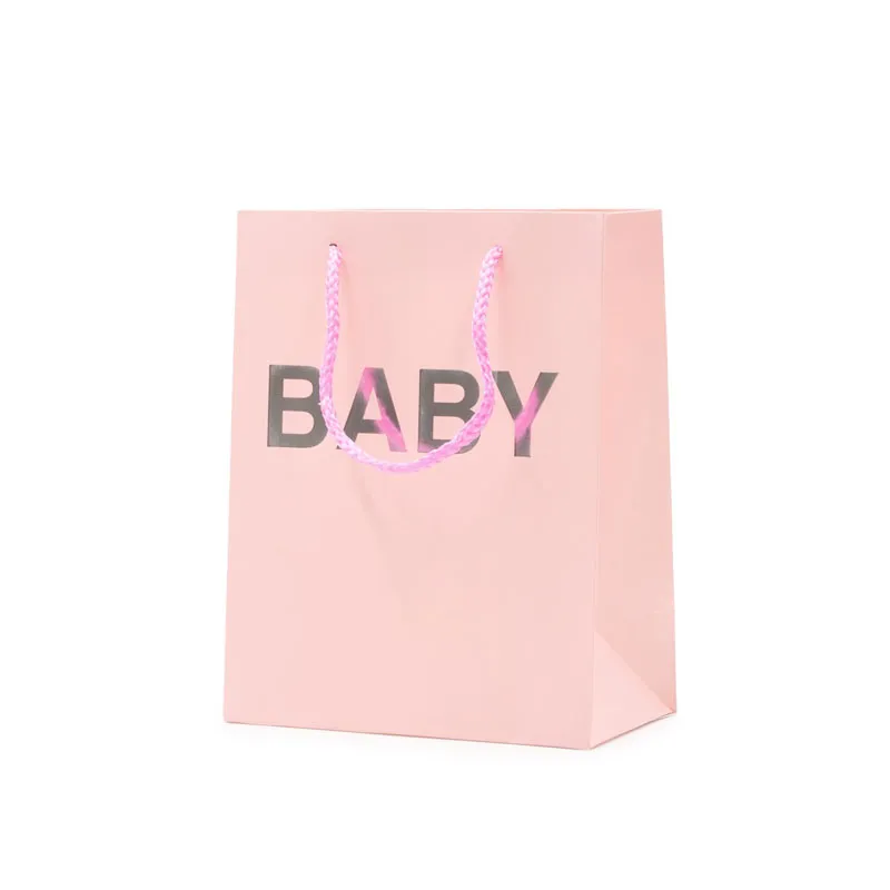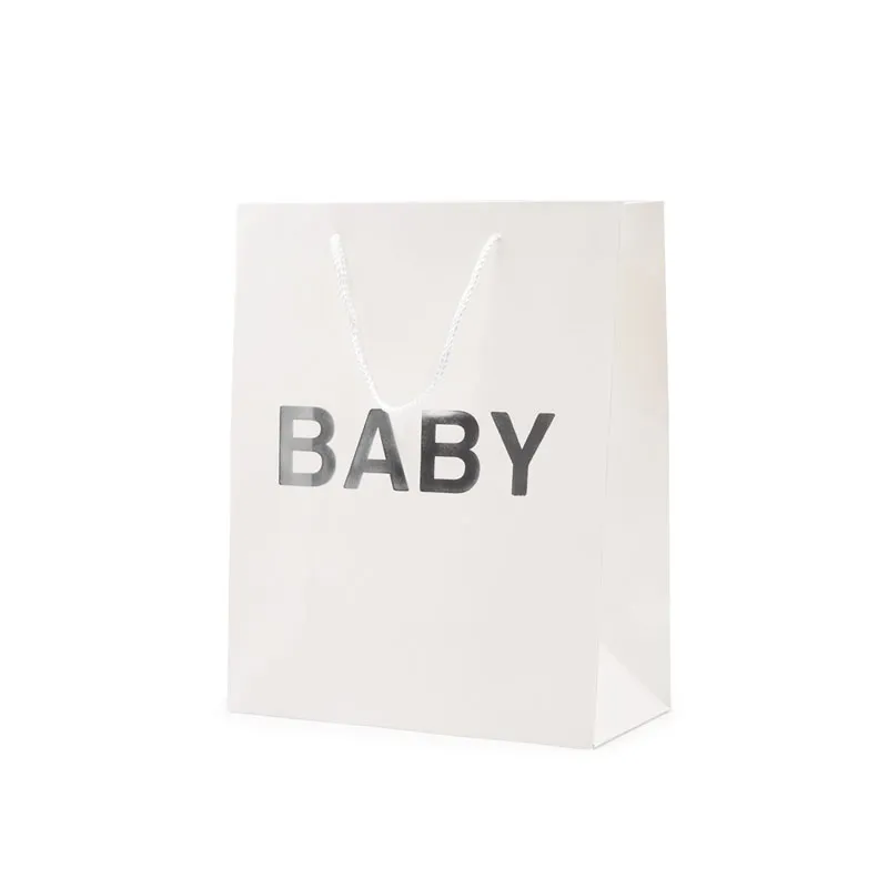 Darilna vrečka z napisom »Baby« je popolna izbira za obdarovanje ob rojstvu otroka. Nežen enobarvni dizajn z napisom Baby ustvarja prikupen in eleganten videz, primeren za darila ob rojstvu, baby shower ali obisk novorojenčka.