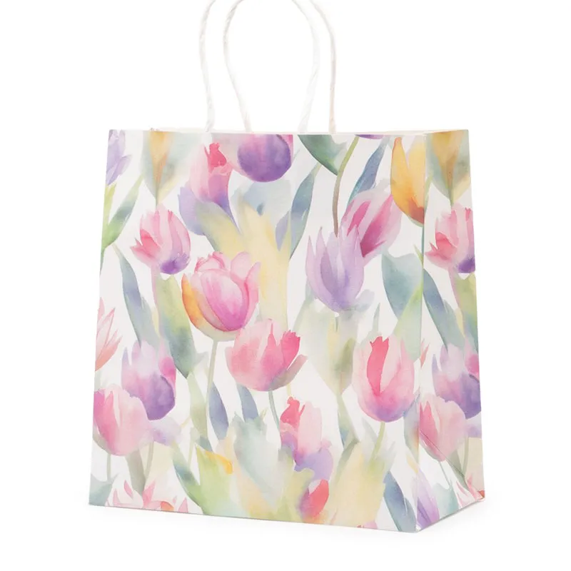 Darilna vrečka s pastelno cvetličnim motivom je odlična izbira za nežno in elegantno pakiranje daril. Pastelne barve in cvetlični vzorci ustvarjajo romantičen in svež videz, zato je darilna vrečka primerna za rojstne dneve, obdarovanje mame, babice, prijateljice ali druge posebne priložnosti.