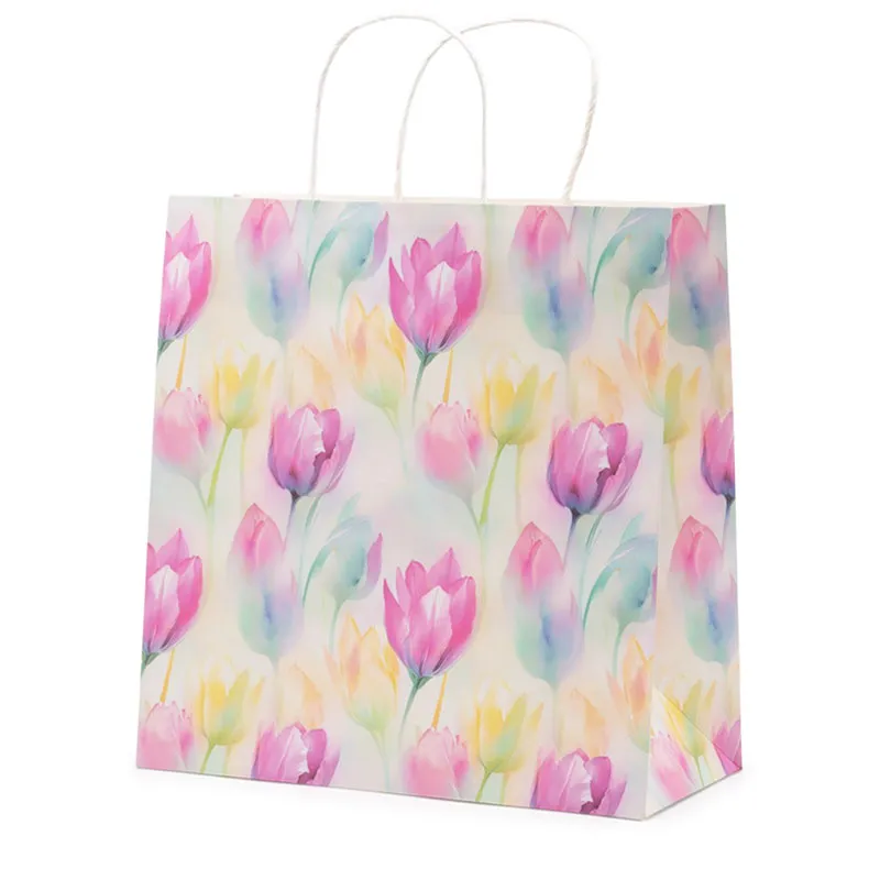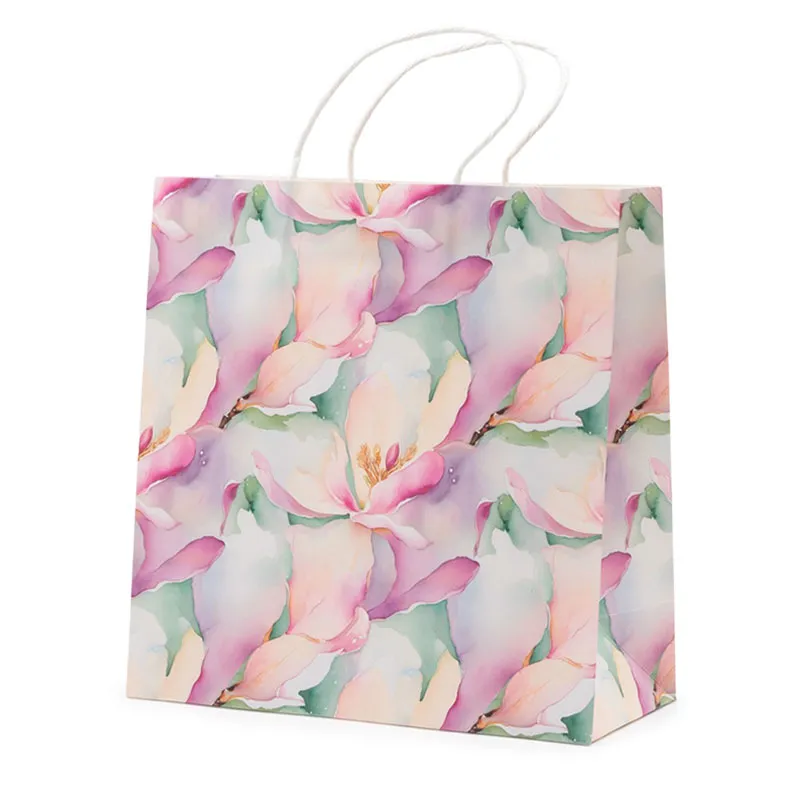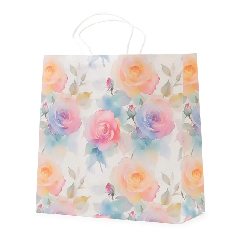 Vrečka darilna, 27x27x11cm, pastelne cvetlice, sort.