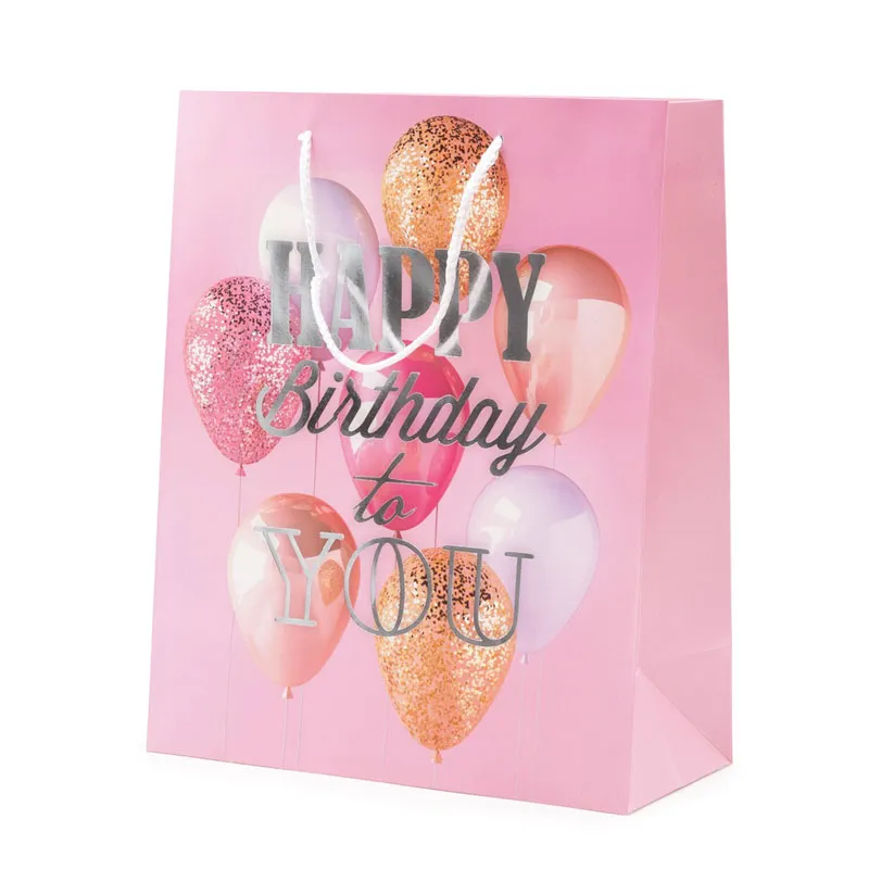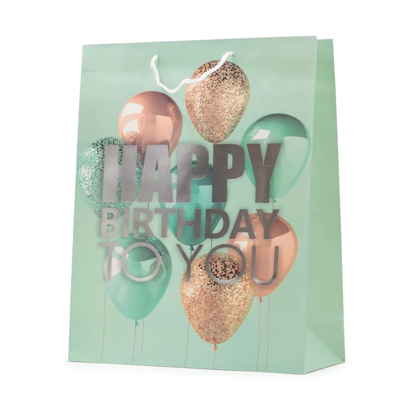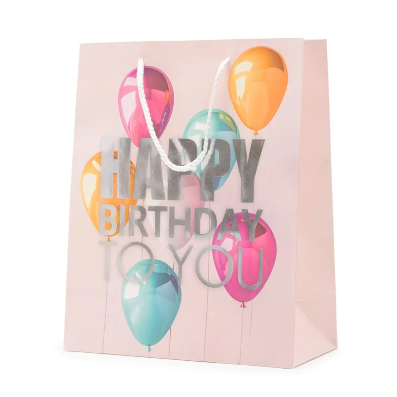 Darilna vrečka z baloni in napisom »Happy Birthday to you« je odlična izbira za praznično pakiranje rojstnodnevnih daril. Barvit motiv balonov ustvari veselo vzdušje in naredi darilo še bolj posebno. Primerna je za rojstne dneve vseh generacij.