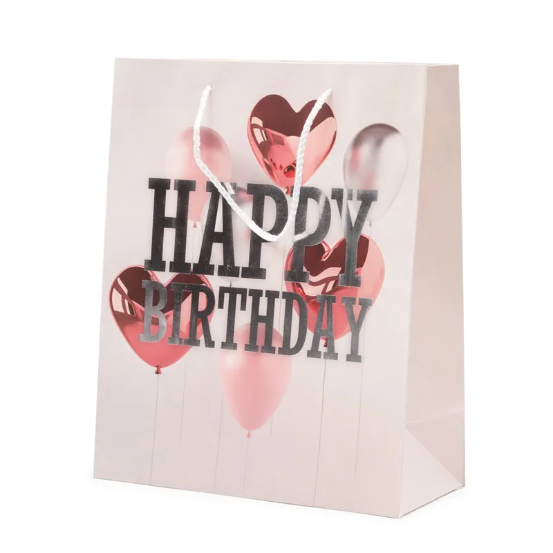 Vrečka darilna, 32x26x12cm, baloni, Happy Birthday to you, sort.