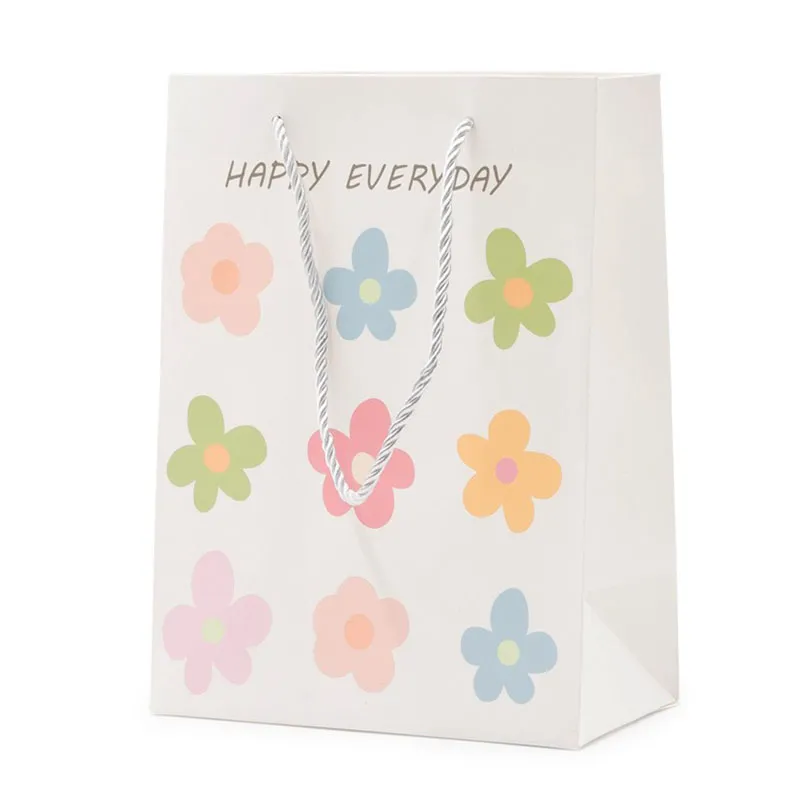 Darilna vrečka s cvetličnim motivom in napisom »Happy Everyday« je popolna izbira za lepo in veselo pakiranje daril. Barvit dizajn s cvetlicami ustvarja prijeten in pozitiven videz, zato je darilna vrečka primerna za rojstne dneve, obdarovanje prijateljev, družine ali druge posebne priložnosti.