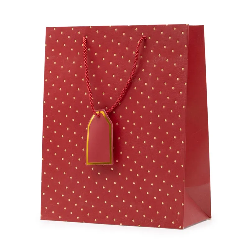 Vrečka darilna, 32x26x12cm, enobarvna, z zlatimi pikami, sort.