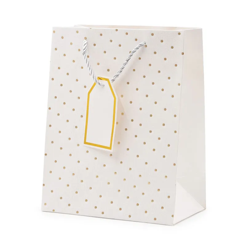Elegantna darilna vrečka z zlatimi pikami je odlična izbira za lepo in hitro zavijanje manjših daril. Enobarvna podlaga v kombinaciji z nežnimi zlatimi pikami ustvarja prefinjen in moderen videz, primeren za različne priložnosti, kot so rojstni dnevi, prazniki, obletnice ali manjša pozornost za posebne trenutke.
