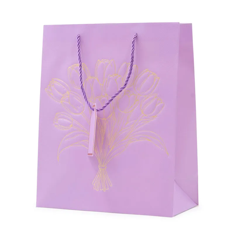 Vrečka darilna, 32x26x12cm, enobarvna, z zlatimi tulipani, sort.