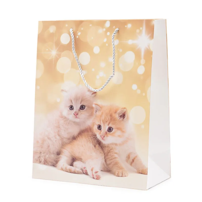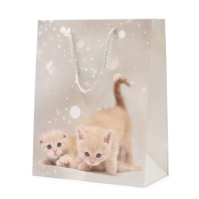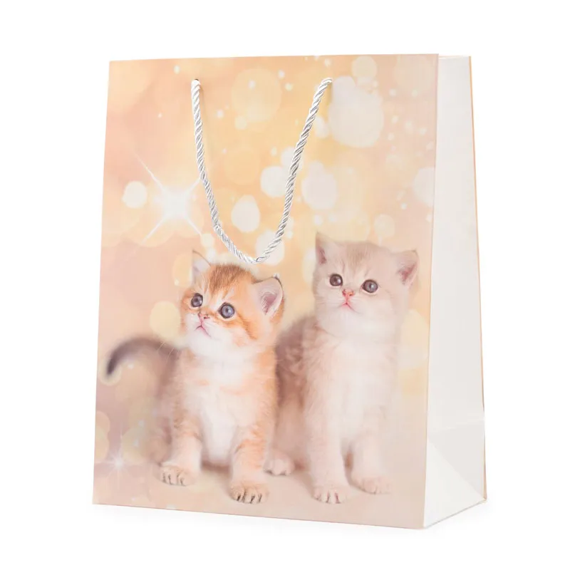 Vrečka darilna, 32x26x12cm, muce, sort.