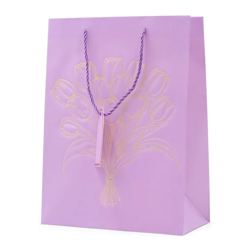 Vrečka darilna, 40x30x12cm, enobarvna, z zlatimi tulipani, sort.