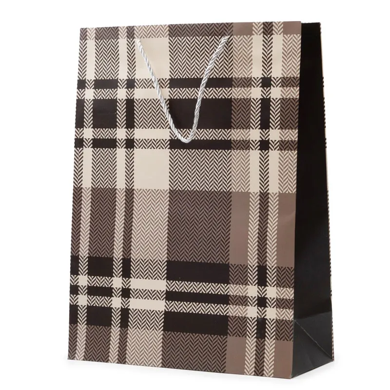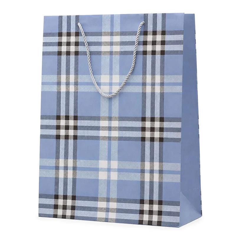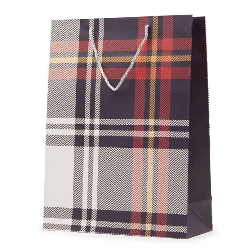 Darilna vrečka s karirastim vzorcem je odlična izbira za elegantno in praktično pakiranje daril za različne priložnosti. Klasičen karirast motiv daje vrečki moderen in urejen videz, ki je primeren tako za moške kot ženske, zato je darilna vrečka idealna za rojstne dneve, praznike, poslovna darila ali druge posebne trenutke.