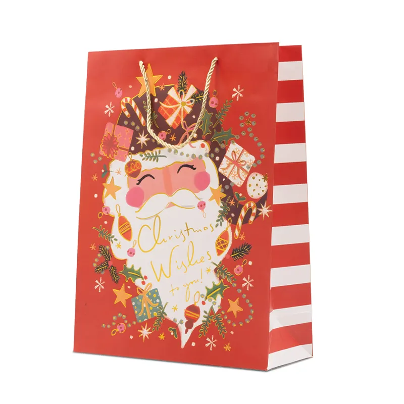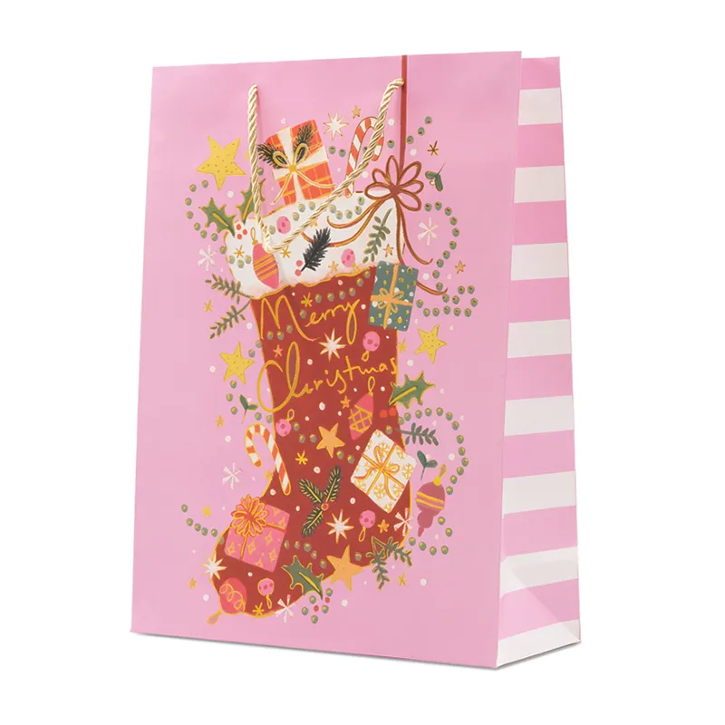 Darilna vrečka z različnimi božičnimi motivi in napisi je popolna izbira za praznično obdarovanje. Na voljo je v različnih barvah in dizajnih, ki prinašajo pravo praznično vzdušje – od klasičnih božičnih simbolov do prijaznih prazničnih voščil. Elegantna in hkrati praktična rešitev, s katero bo vsako darilo zasijalo v praznični podobi.
