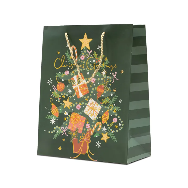 Darilna vrečka z različnimi božičnimi motivi in napisi je popolna izbira za praznično obdarovanje. Na voljo je v različnih barvah in dizajnih, ki prinašajo pravo praznično vzdušje – od klasičnih božičnih simbolov do prijaznih prazničnih voščil. Elegantna in hkrati praktična rešitev, s katero bo vsako darilo zasijalo v praznični podobi.