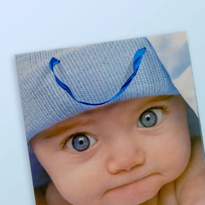 Ko v družino sorodnikov ali prijateljev pride novi družinski član ali ko osebni praznik praznuje majhen otrok, je to priložnost, ki jo moramo ustrezno zaznamovati — z lepim darilom, ki ga odnesemo v lepi darilni vrečki (31,5 x 26 x 11,5 cm) z otroškim motivom v modri ali roza barvi.