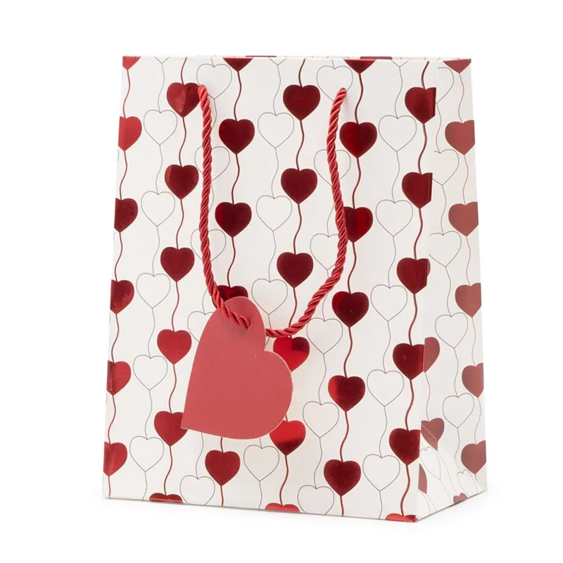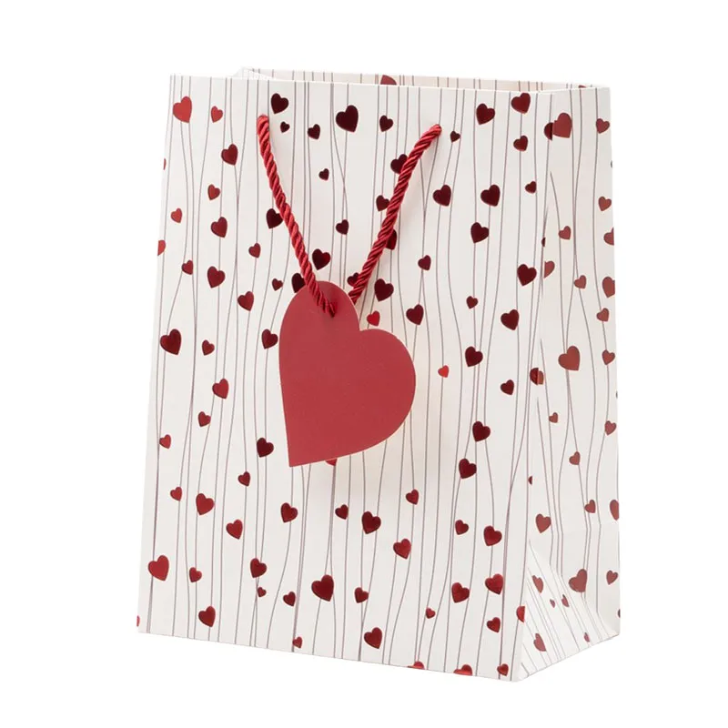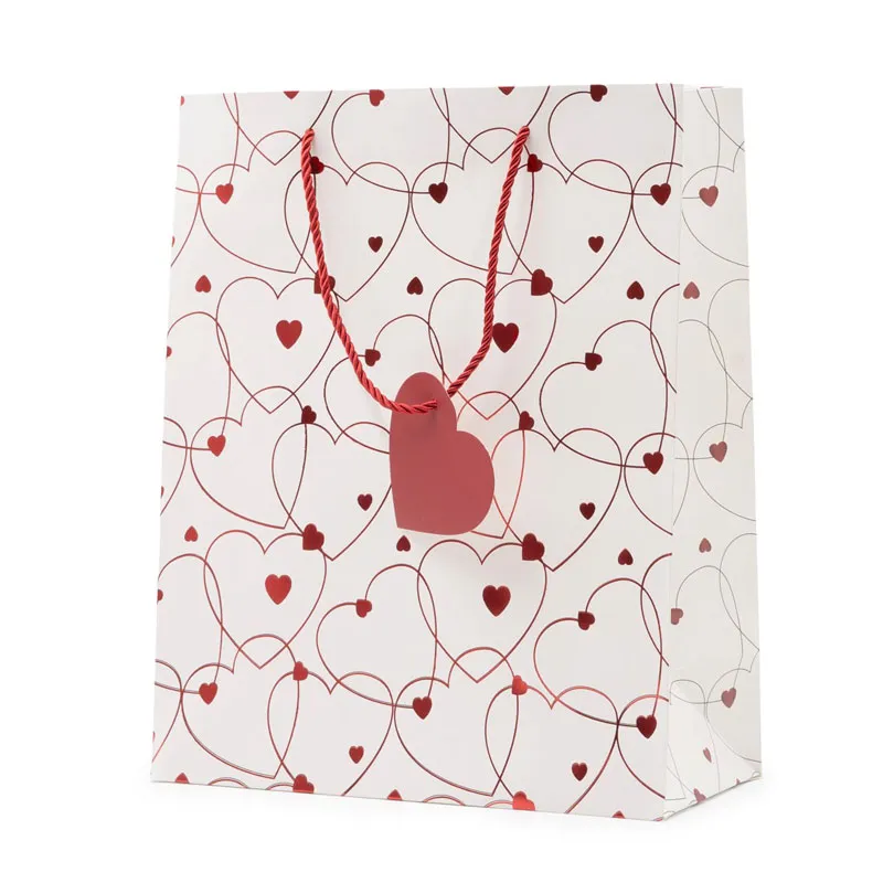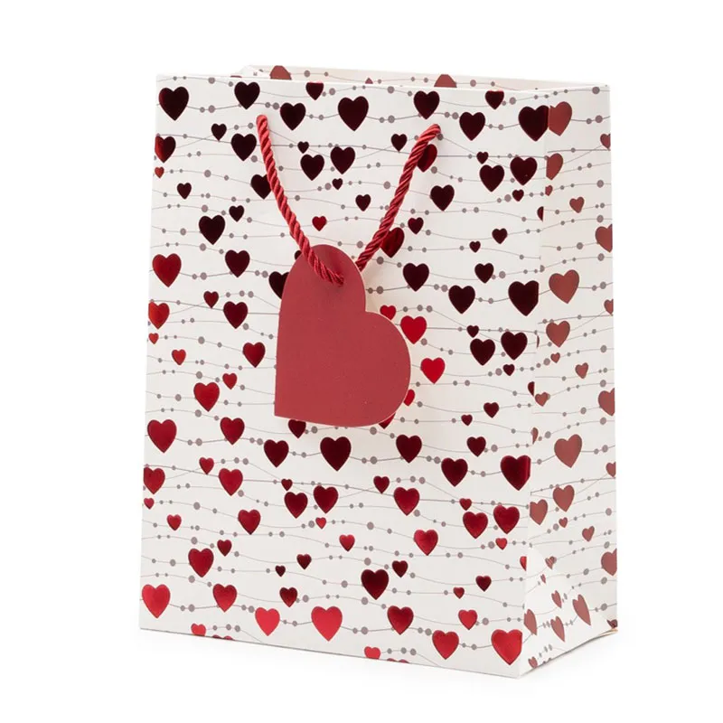 Vrečka darilna, 32x26x12cm, bela s srčki, sort.