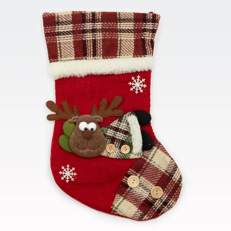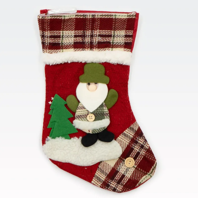Nogavica božična, rdeča, dekorirana, poliester, 35x22cm, sort.