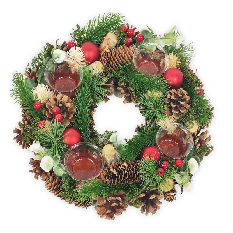Adventni venček okrogel, naravni material, PVC, steklo, 34x34x8.5cm