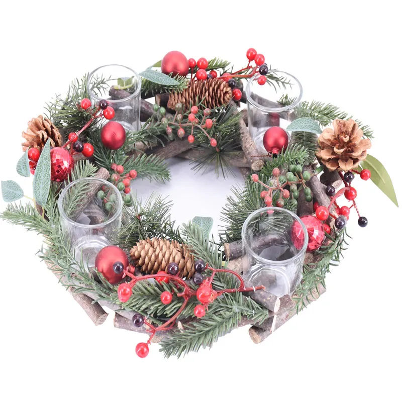 Adventni venček okrogel, naravni material, PVC, steklo, 34x34x8cm