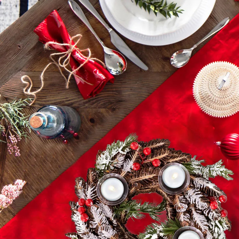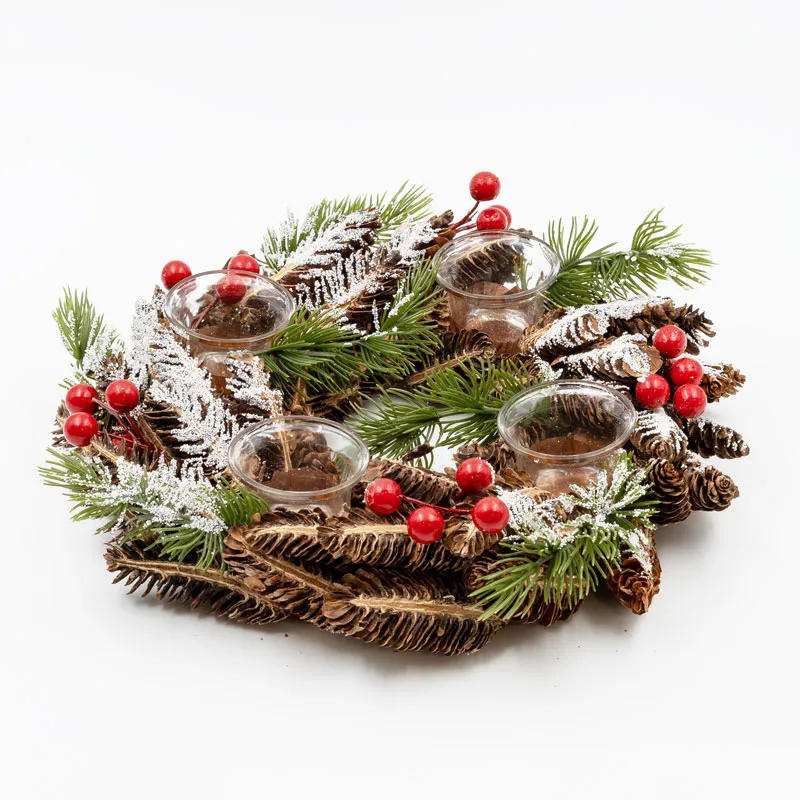 Adventni venček okrogel, naravni material, PVC, steklo, 33x33x8cm