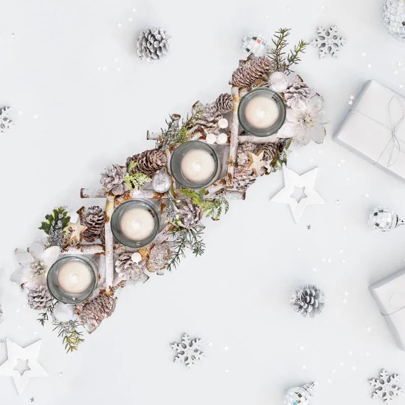 Adventni venček podolgovat, bel, naravni material, PVC, steklo, 50x14x10cm
