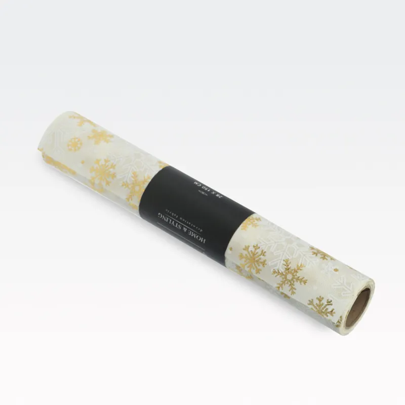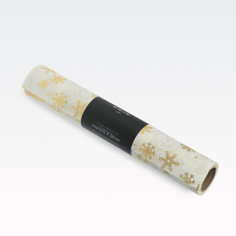 Blago na roli, božični motiv, bela s snežinkami, 100% poliester, 28x250cm
