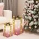 Božična dekoracija v obliki darila z LED lučko, belo/roza, na baterije, 15x15x29cm