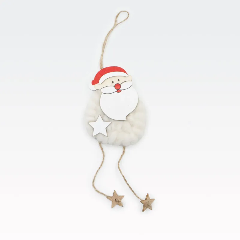 Obesek božični, Božiček, natur z belo volno, MDF, 8.5cm