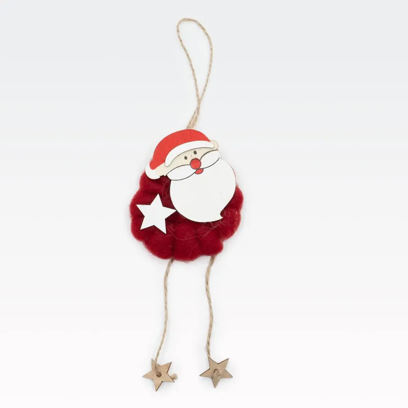 Obesek božični, Božiček, natur z rdečo volno, MDF, 8.5cm