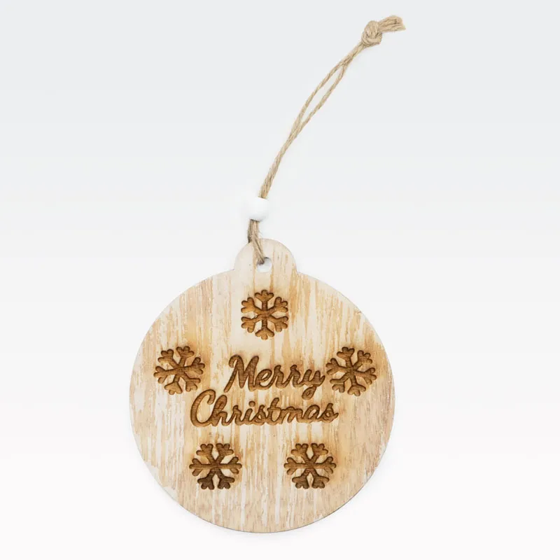 Obesek božični, božična krogla, Merry Christmas, natur, MDF,10cm