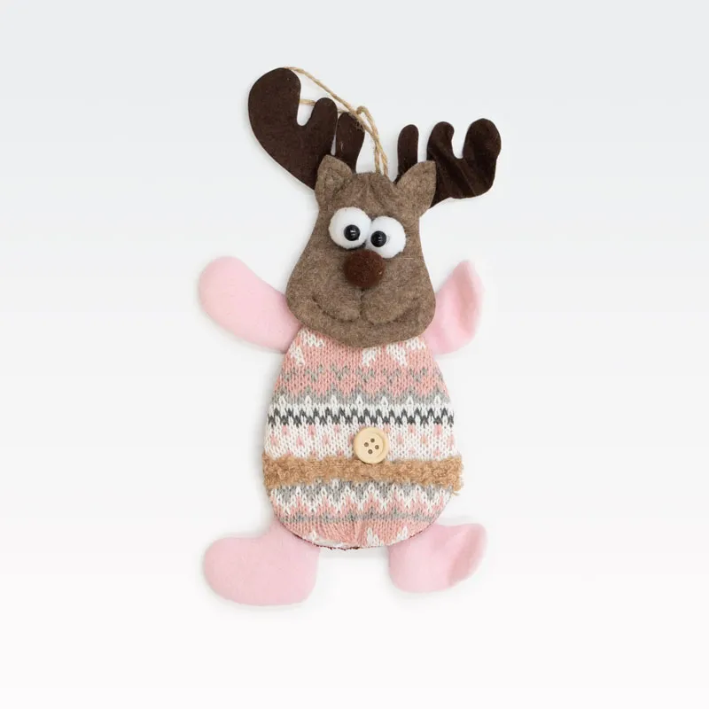 Obesek božični, figura, v roza barvi, poliester, 12.5x16cm, sort.