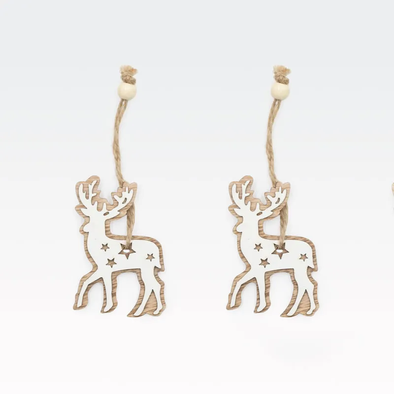 Obesek božični, jelenček, natur/bel, MDF, 7cm