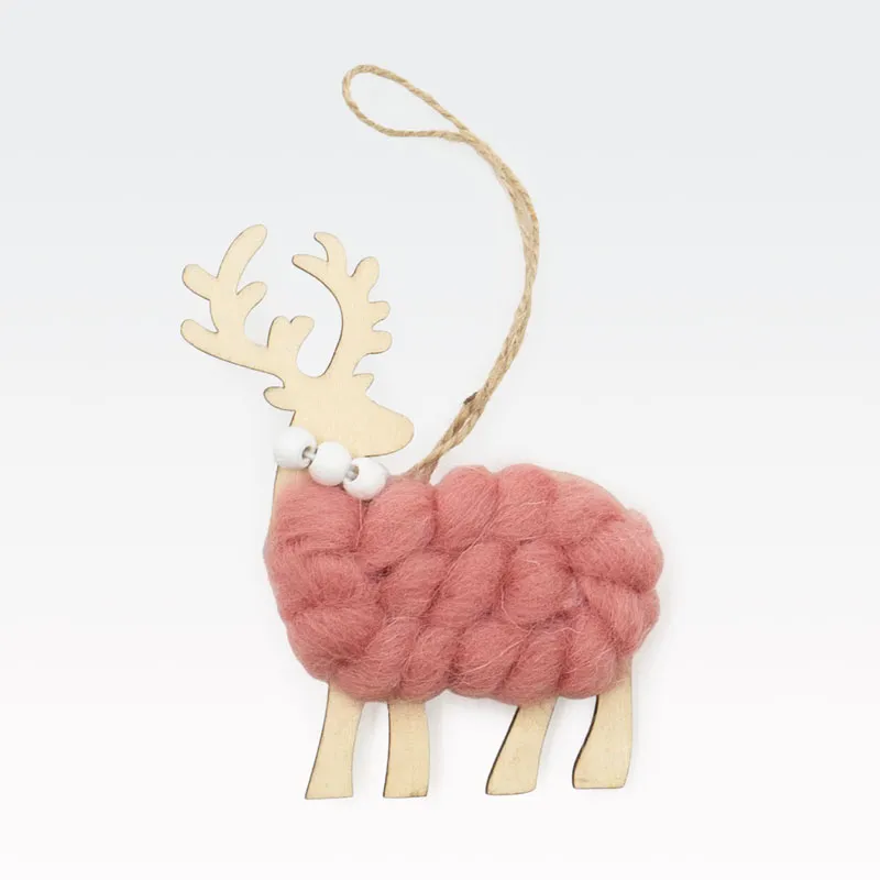 Obesek božični, jelenček, natur z roza volno, MDF,8.5cm
