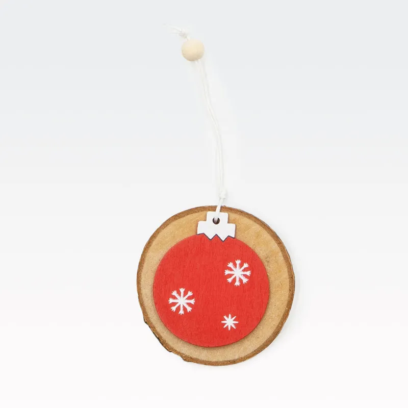 Obesek božični, lesen krog, božična krogla, rdeča, MDF, 7.5cm