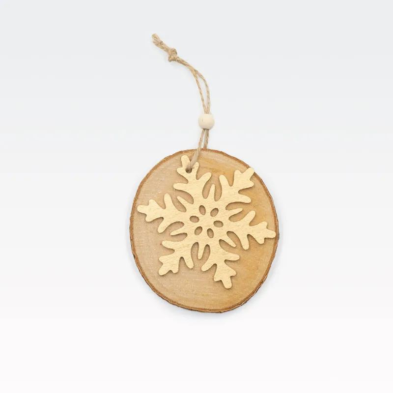 Obesek božični, lesen krog, snežinka, zlata, MDF, 8-9cm