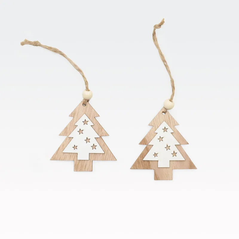 Obesek božični, smrekica, natur/bela, 2/1, MDF, 7cm