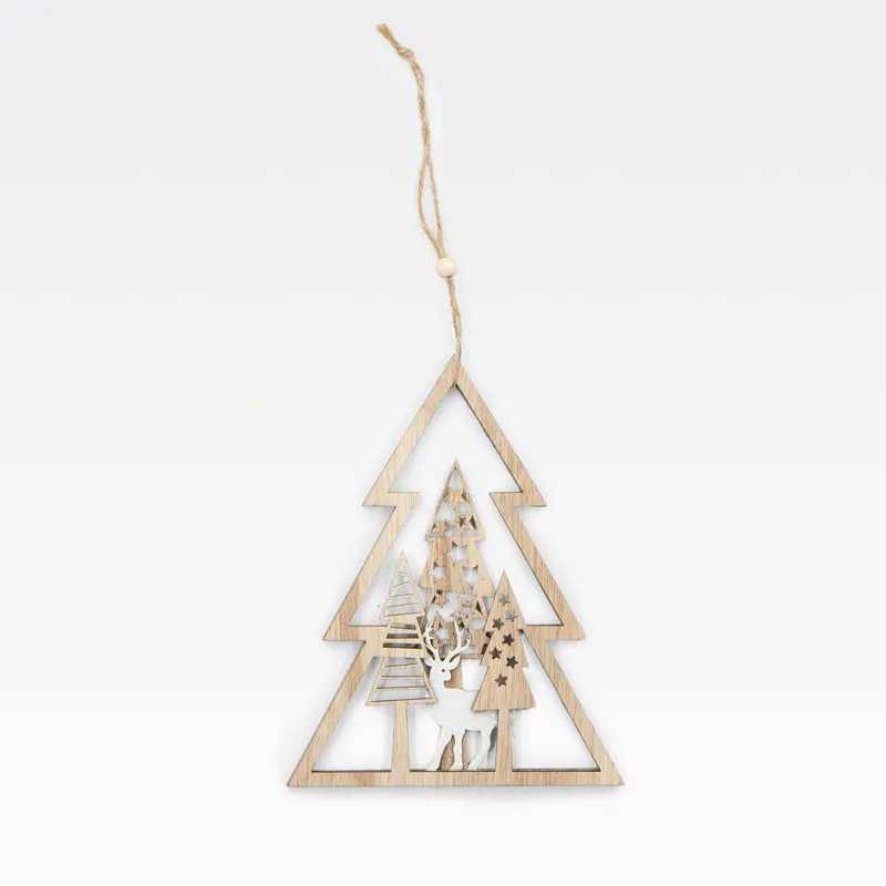 Obesek božični, smrekica z jelenčkom, natur, MDF, 20cm