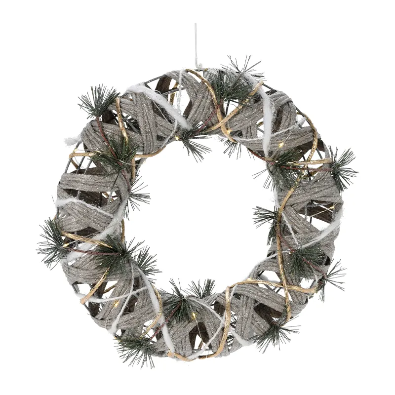 Božični venec srebrn, 20 LED, na baterije, 30cm