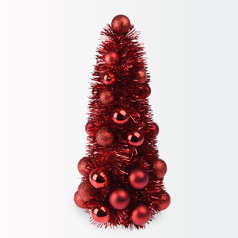 Ni nujno, da božično drevo zavzame veliko prostora kot na primer, to sijoče rožnato božično drevo, posuto s 35 kroglami, je precej majhno, zlahka se prilega na mizo in polico, vendar s tem ne izgubi svojih čudovitih lastnosti! Lesketa in blešči