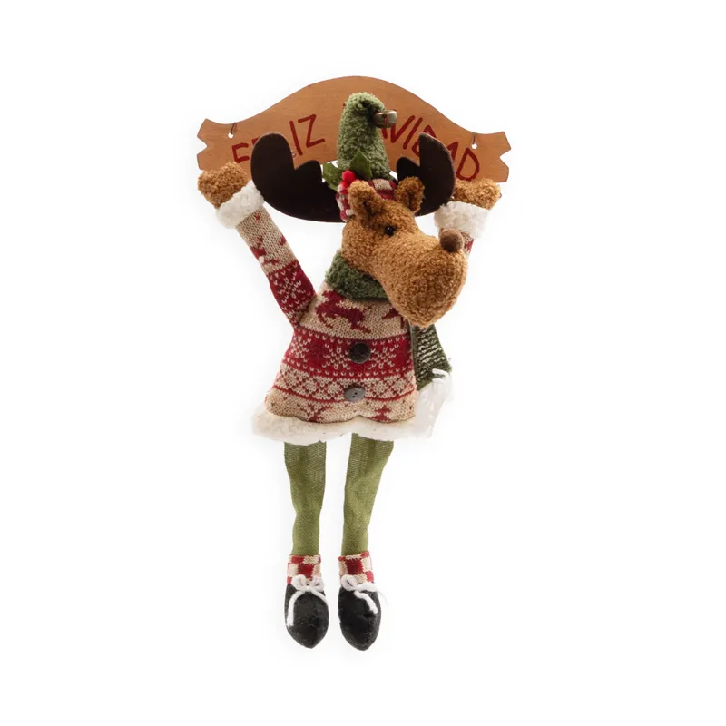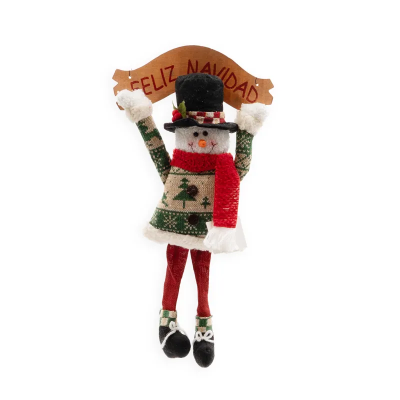 Dekoracija božična, za vrata, figura z mehkimi nogami in napisom, poliester/les, 26x50cm, sort.